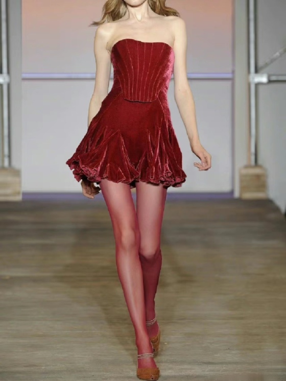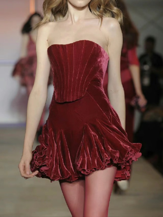 丝绒红裙参考图片(侵删)
